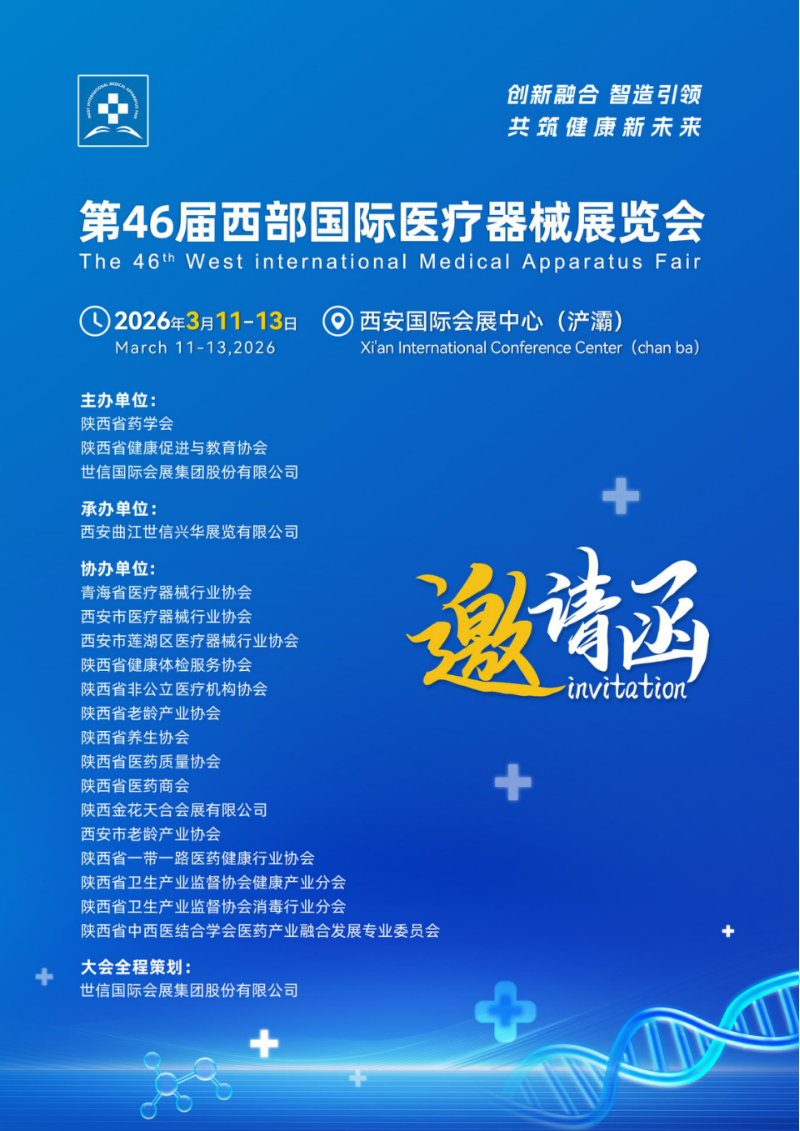 为深入贯彻健康中国战略,加快推动医疗健康产业高质量发展,第46届西部国际医疗器械展览会将于2026311-13日在西安国际会展中心隆重举行。本届展会将继续邀请西部各省市医疗机构、行业协会、采购商、经销代理商及行业专家参与,打造一个集展览展示、专业论坛、供需对接、商贸洽谈和系统服务于一体的全方位、多层次、高品质的行业盛会,助力医疗器械产业高质量发展。